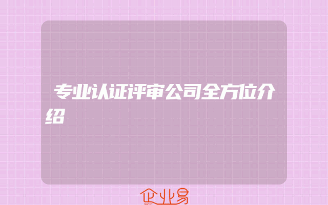 - 专业认证评审公司全方位介绍一、公司概述随着市场规范化与企业信誉度的日益重视,专业认证评审公司逐渐崭露头角。此类公司致力于为企业提供全方位的资质认证服务,确保企业符合行业标准和政策要求。它们不仅具备丰富的行业经验和专业知识,还拥有高效的评审流
