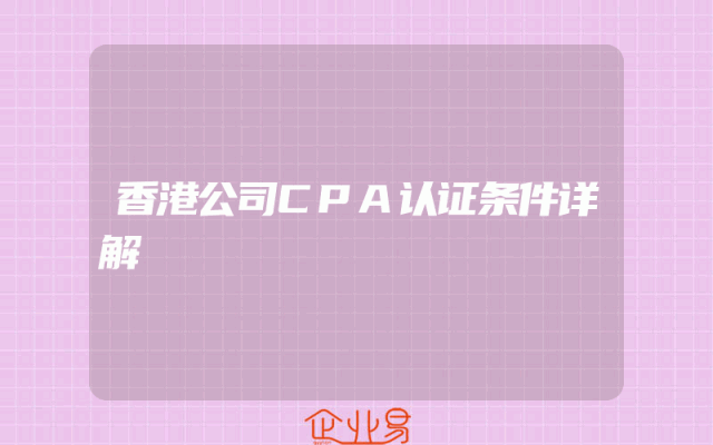 - 香港公司CPA认证条件详解一、CPA认证概述在香港,公司CPA(注册会计师)认证对于企业的运营和发展具有重要意义。随着商业环境的日益复杂化,具备专业会计知识和技能的人才需求日益增长。香港公司CPA认证是为了确保企业在财务管理方面的专业性和合