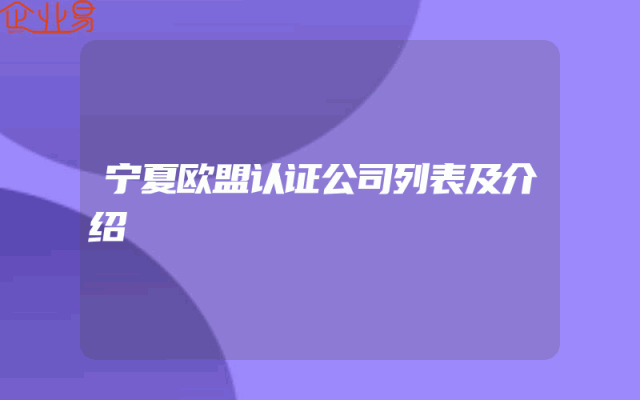- 宁夏欧盟认证公司列表及介绍一、引言随着全球化的发展,越来越多的中国企业开始走出国门,与国际市场接轨。在进军欧洲市场的过程中,获得欧盟认证成为了企业的重要目标之一。在宁夏,也有多家企业致力于欧盟认证工作,并为此付出了诸多努力。以下是对宁夏地区