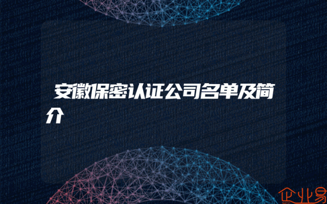 - 安徽保密认证公司名单及简介安徽省保密认证企业概述随着信息化时代的不断发展,保密工作在企业中显得愈发重要。安徽省作为经济较为发达的地区之一,拥有众多涉及保密认证的公司。这些公司在保障信息安全、维护国家安全方面发挥着重要作用。安徽保密认证公司名