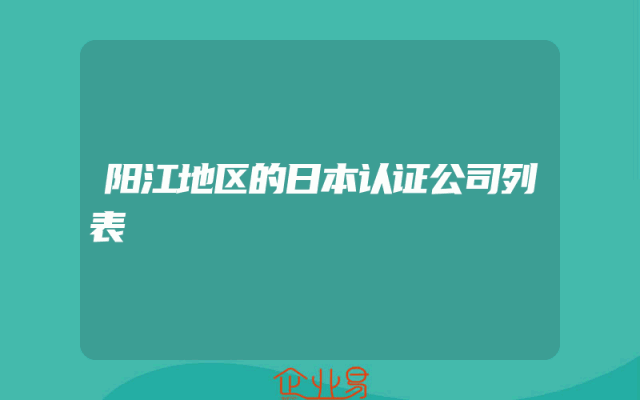 - 阳江地区的日本认证公司列表