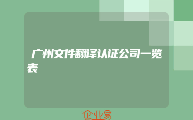 - 广州文件翻译认证公司一览表