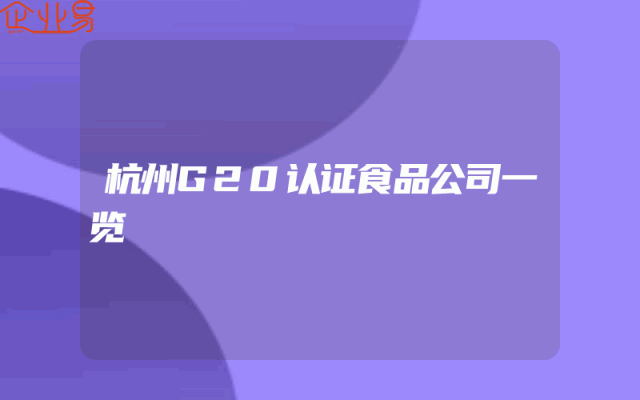 - 杭州G20认证食品公司一览