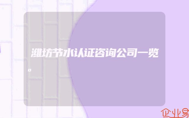 - 潍坊节水认证咨询公司一览潍坊节水认证咨询行业发展概述随着全球水资源日益紧缺,节水认证咨询行业在中国各地蓬勃发展。潍坊市作为重要的经济城市,节水认证咨询行业也日渐兴起。众多节水认证咨询公司纷纷在此设立分支机构,为企业提供全方位的节水认