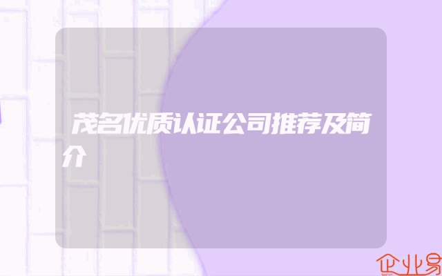 - 茂名优质认证公司推荐及简介茂名市的认证服务概况茂名市作为经济发达的地区,吸引了众多优质认证公司的进驻。这些公司凭借丰富的经验、专业的团队和高效的服务,为企业提供了全方位的资质办理支持。五家优质认证公司推荐1.腾飞认证服务有限公司腾飞认证服务