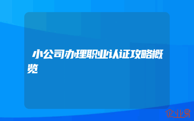 - 小公司办理职业认证攻略概览一、了解职业认证的重要性对于小公司而言,办理职业认证不仅是提升企业竞争力的关键步骤,也是展示公司专业性和可靠性的重要手段。职业认证可以帮助企业在激烈的市场竞争中脱颖而出,增加客户信任度,拓展业务范围,并为企业的长远