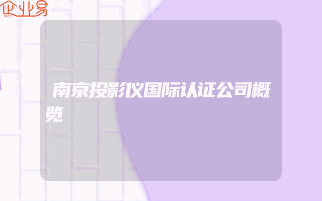 - 南京投影仪国际认证公司概览公司背景及简介南京投影仪国际认证公司是一家致力于为企业提供专业、全面和高效的企业资质办理服务的机构。随着全球化的发展,企业参与国际竞争日益频繁,南京投影仪国际认证公司应运而生,为企业提供国际认证相关的咨询和
