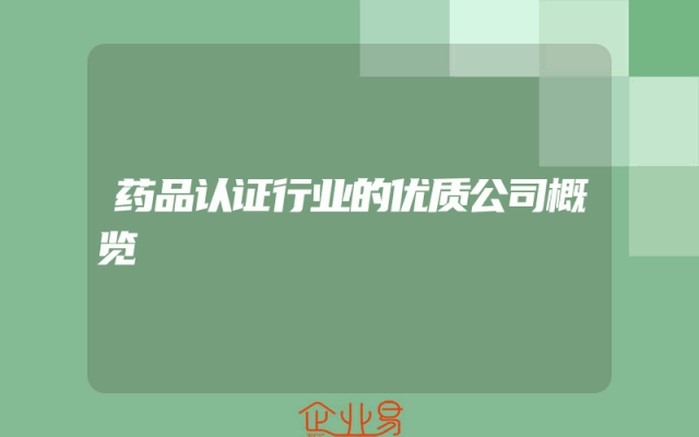 - 药品认证行业的优质公司概览一、药品认证行业的概述药品认证是保证药品安全、有效的重要手段,行业内具备优质服务和专业能力的公司在整个产业链中扮演着重要的角色。这些公司涉及药品研发、生产、流通等各个环节,拥有专业的团队和先进的设备,致力于确保药品