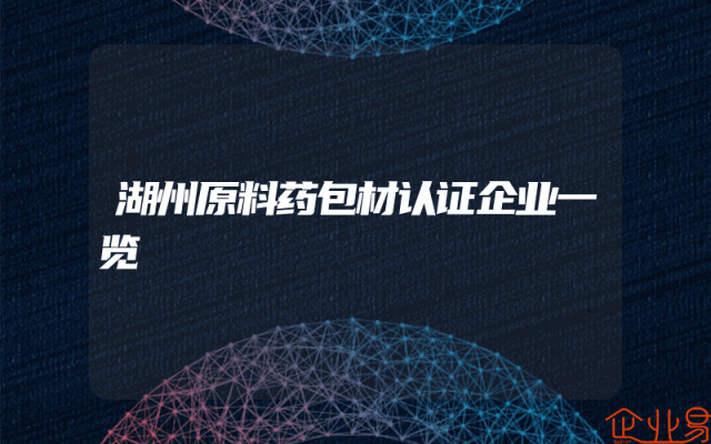 - 湖州原料药包材认证企业一览