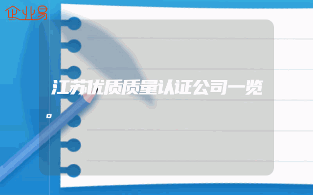 - 江苏优质质量认证公司一览一、引言在江苏省,众多企业致力于提供高质量的产品和服务,追求卓越的管理与认证。其中,江苏的优质质量认证公司在推动行业发展和提高客户满意度方面发挥了重要作用。本文将详细介绍几家在行业内颇具影响力的江苏优质质量认证公司,