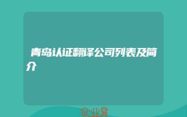 - 青岛认证翻译公司列表及简介一、青岛翻译行业概述青岛,作为沿海重要的城市之一,对外开放程度高,国际贸易往来频繁。因此,翻译服务的需求也日益增长。在这样一个背景下,许多专业的翻译公司如雨后春笋般涌现,为广大客户提供高质量的翻译服务。下面将为您列