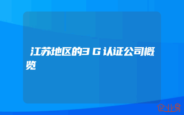 - 江苏地区的3G认证公司概览
