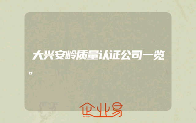 - 大兴安岭质量认证公司一览。