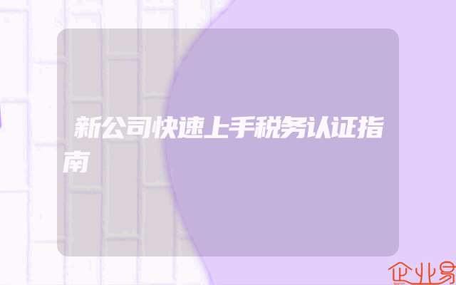- 新公司快速上手税务认证指南