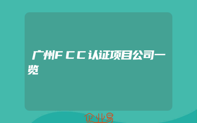 - 广州FCC认证项目公司一览