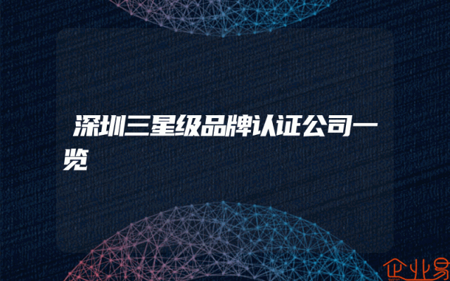 - 深圳三星级品牌认证公司一览