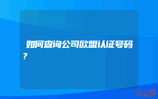 - 如何查询公司欧盟认证号码?