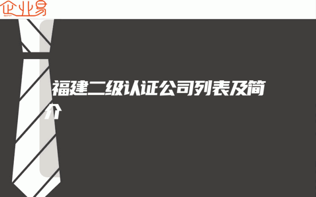 - 福建二级认证公司列表及简介一、二级认证公司概述在福建省,随着经济的持续繁荣和发展,众多企业纷纷注册成立,其中不乏众多二级认证公司。这些公司涉及不同的行业领域,包括建筑、信息、制造等,为福建省乃至全国的企业提供优质的服务。以下是一些福建二级认