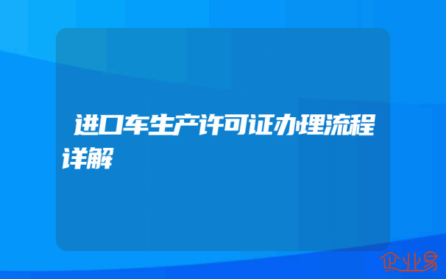 - 进口车生产许可证办理流程详解