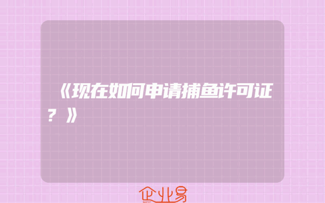 - 《现在如何申请捕鱼许可证?》