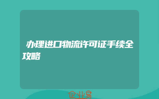 - 办理进口物流许可证手续全攻略