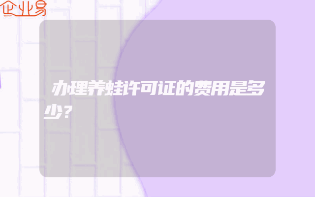 - 办理养蛙许可证的费用是多少?一、养蛙许可证概述养蛙许可证是针对养殖蛙类业务的单位和个人所颁发的一种行政许可。随着生态环境的日益重视及野生动物保护法的不断完善,养蛙业也逐渐规范化,办理养蛙许可证已成为养殖企业的必要步骤。此证确保了养殖过程的合
