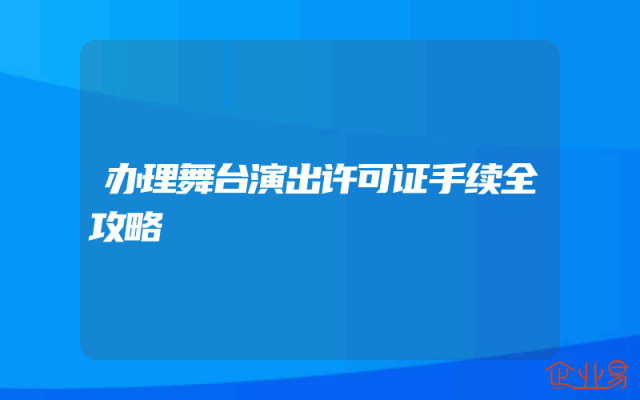 - 办理舞台演出许可证手续全攻略
