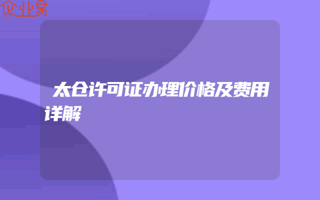 - 太仓许可证办理价格及费用详解
