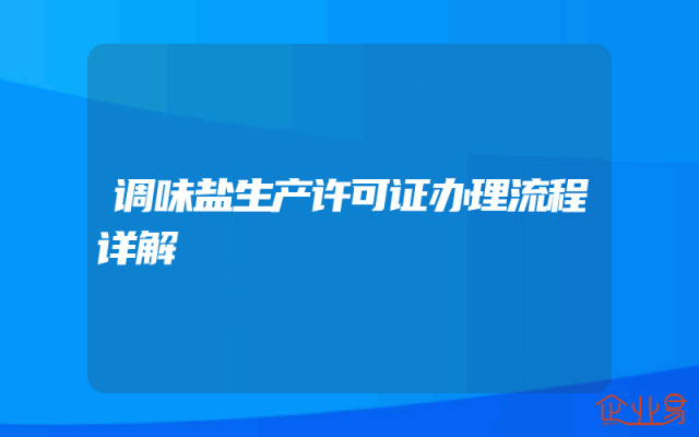 - 调味盐生产许可证办理流程详解