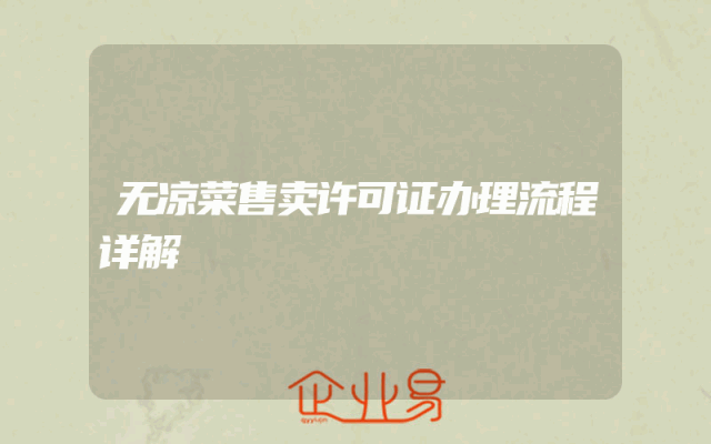 - 无凉菜售卖许可证办理流程详解随着食品行业的蓬勃发展,各种餐饮服务日益兴起,为满足市场需求,不少商家推出不含凉菜的餐饮服务以获取经营许可证。本文将详细解析无凉菜售卖许可证的办理流程,以帮助相关从业者在规