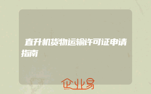 - 直升机货物运输许可证申请指南了解直升机货物运输许可证直升机货物运输许可证是一种法定资质,用于确保直升机在进行货物运输时符合相关法律法规的规定,保障空中货物运输安全。该许可证是航空公司或者物流企业合法运营的必要条件之一。申请直升机货物运输许可