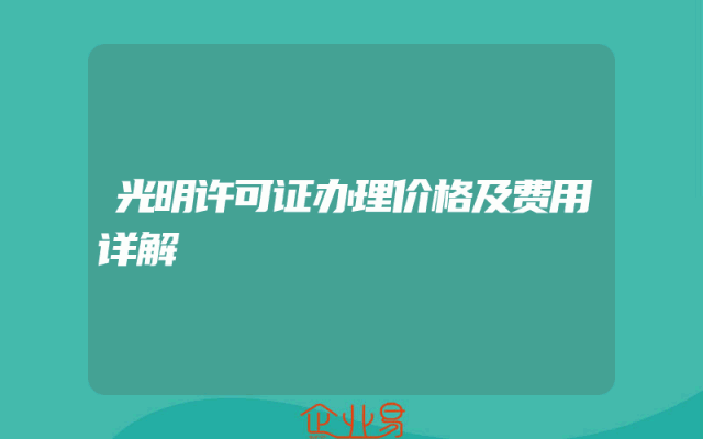 - 光明许可证办理价格及费用详解一、许可证办理的基本费用在办理光明许可证的过程中,最基本的费用包括政府规定的申请费、审批费、工本费等。这些费用是根据当地政府物价部门的规定来设定的,具体金额会根据地区差异、行业类型、许可证种类等因素而有所变动。申