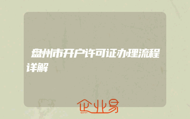 - 盘州市开户许可证办理流程详解