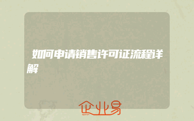 - 如何申请销售许可证流程详解