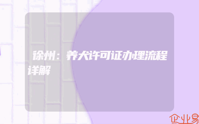- 徐州:养犬许可证办理流程详解一、了解养犬许可证的重要性在徐州,养犬必须办理养犬许可证,这是依法养宠的重要一环。养犬许可证不仅保障了宠物犬的合法权益,更确保了社会的和谐与公众的安全。持有许可证的犬只才能在公共场所出入,为宠物主人提供了