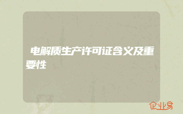 - 电解质生产许可证含义及重要性解析一、电解质生产许可证的含义电解质生产许可证是国家针对电解质生产行业实施的一种行政许可制度。它是政府管理部门针对电解质生产企业进行资质审查合格后颁发的证书,以确认该企业在生产过程中的技术条件、质量控制和管理体系
