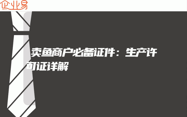 - 卖鱼商户必备证件:生产许可证详解一、生产许可证概述对于卖鱼商户而言,生产许可证是合法经营的必备证件之一。该证件是由国家相关机构颁发的,对商户的生产条件、产品质量、安全管理等方面进行审核的证书。获取生产许可证,意味着商户具备了合法生产