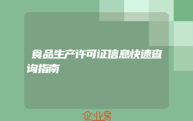 - 食品生产许可证信息快速查询指南一、了解食品生产许可证食品生产许可证是国家对食品生产企业监管的重要体现,它确保了食品生产过程的合规性和产品质量的安全性。作为消费者,我们有必要了解食品生产许可证的相关信息,以保障我们的饮食安全。二、选择查询途径