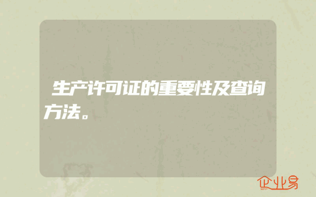 - 生产许可证图片查询方法与步骤指南在现代企业管理过程中,对于生产许可证的管理显得尤为重要。本文将详细指导您如何通过生产许可证图片查询方法来获取相关信息,以确保企业合法合规运营。以下是详细的查询方法与步骤指南:一、了解生产许可证生产许可