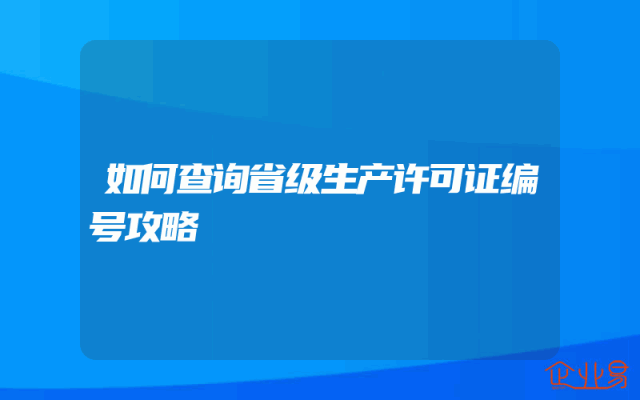- 如何查询省级生产许可证编号攻略