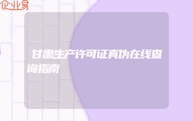 - 甘肃生产许可证真伪在线查询指南一、引言随着信息技术的快速发展,互联网在各行各业的应用越来越广泛。在甘肃,许多企业和个人可以通过互联网查询生产许可证的真伪,以确认企业的合法性和产品的合规性。本文将详细介绍甘肃生产许可证真伪在线查询的方法和步骤