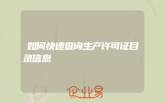 - 如何快速查询生产许可证目录信息一、了解生产许可证的重要性在现代企业运营中,生产许可证是一种重要的资质证明,它直接关系到企业的合法经营和生产活动。对于企业和消费者来说,了解如何快速查询生产许可证目录信息至关重要,这不仅有助于保障企业的合法权益