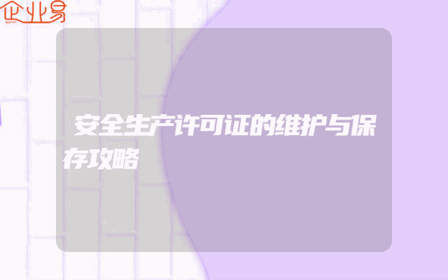 - 安全生产许可证的维护与保存攻略