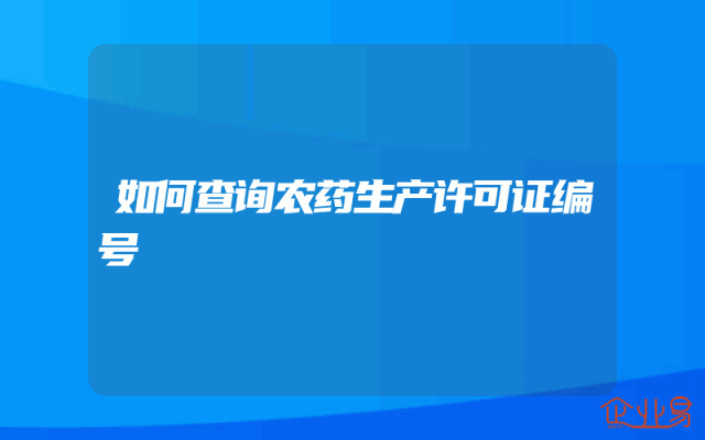 - 如何查询农药生产许可证编号
