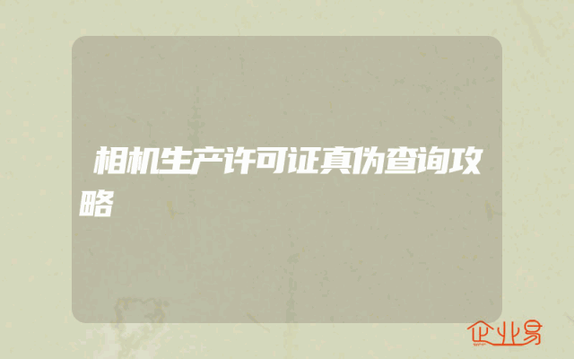 - 相机生产许可证真伪查询攻略一、了解许可证基本常识在探讨相机生产许可证真伪查询攻略之前,我们需要对许可证有一定的了解。许可证是国家相关机构对特定行业进行监管的一种证明文件,它代表了企业的合法经营资质。对于相机生产行业而言,许可证是确保产品质量