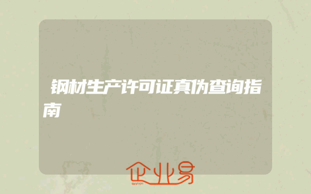 - 钢材生产许可证真伪查询指南一、了解钢材生产许可证基本知识在开始查询钢材生产许可证真伪之前,我们需要对许可证有一个基本的了解。钢材生产许可证是国家对钢材生产企业的一种资质认证,证明该企业在生产工艺、设备设施、产品质量等方面符合国家相关标准。为