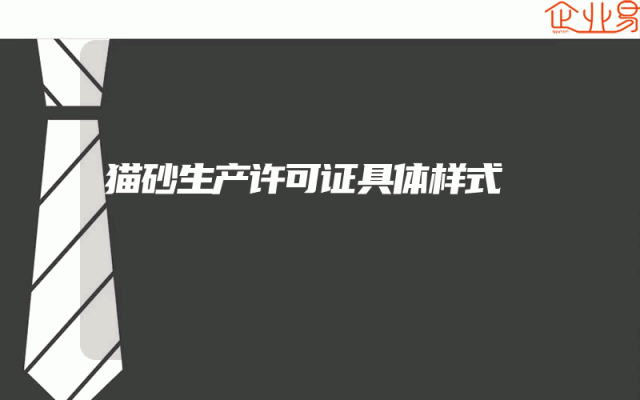 - 猫砂生产许可证具体样式解析一、许可证概述猫砂作为宠物用品的重要一环,其生产需要得到相应的许可和认证,以确保产品质量和安全性。生产许可证是国家管理部门针对猫砂生产企业颁发的一种行政许可文件,旨在规范企业生产行为,保障消费者和市场的合法权益。该