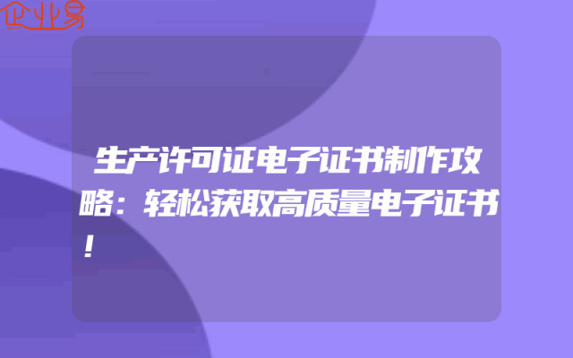 - 生产许可证电子证书制作攻略:轻松获取高质量电子证书!
