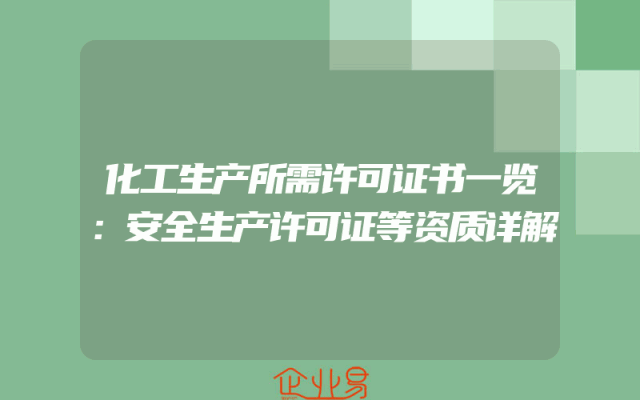 - 化工生产所需许可证书一览:安全生产许可证等资质详解