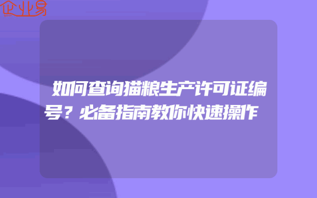 - 如何查询猫粮生产许可证编号?必备指南教你快速操作